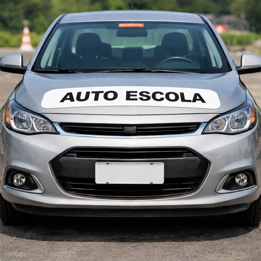 Inscrição “AUTOESCOLA” em preto, de alta visibilidade